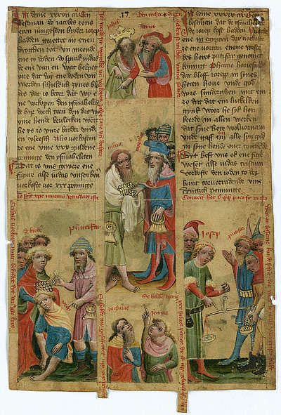 Bücher wurden im Mittelalter zunächst hergestellt, damit man in ihnen Texte bewahren und weitergeben konnte. Sehr bald ergänzte eine weitere Ebene die Texte: die Ausstattung der Handschriften mit Buchschmuck. In deutschsprachigen Codices begann man ab der Mitte des 12. Jahrhunderts, Bilder zu Texten hinzuzufügen. Im 14. und 15. Jahrhundert findet sich dann eine Reihe von illustrierten Handschriften: In farbigen Initialen konnte beispielsweise der Autor des Textes dargestellt oder eine kleine Geschichte erzählt werden.